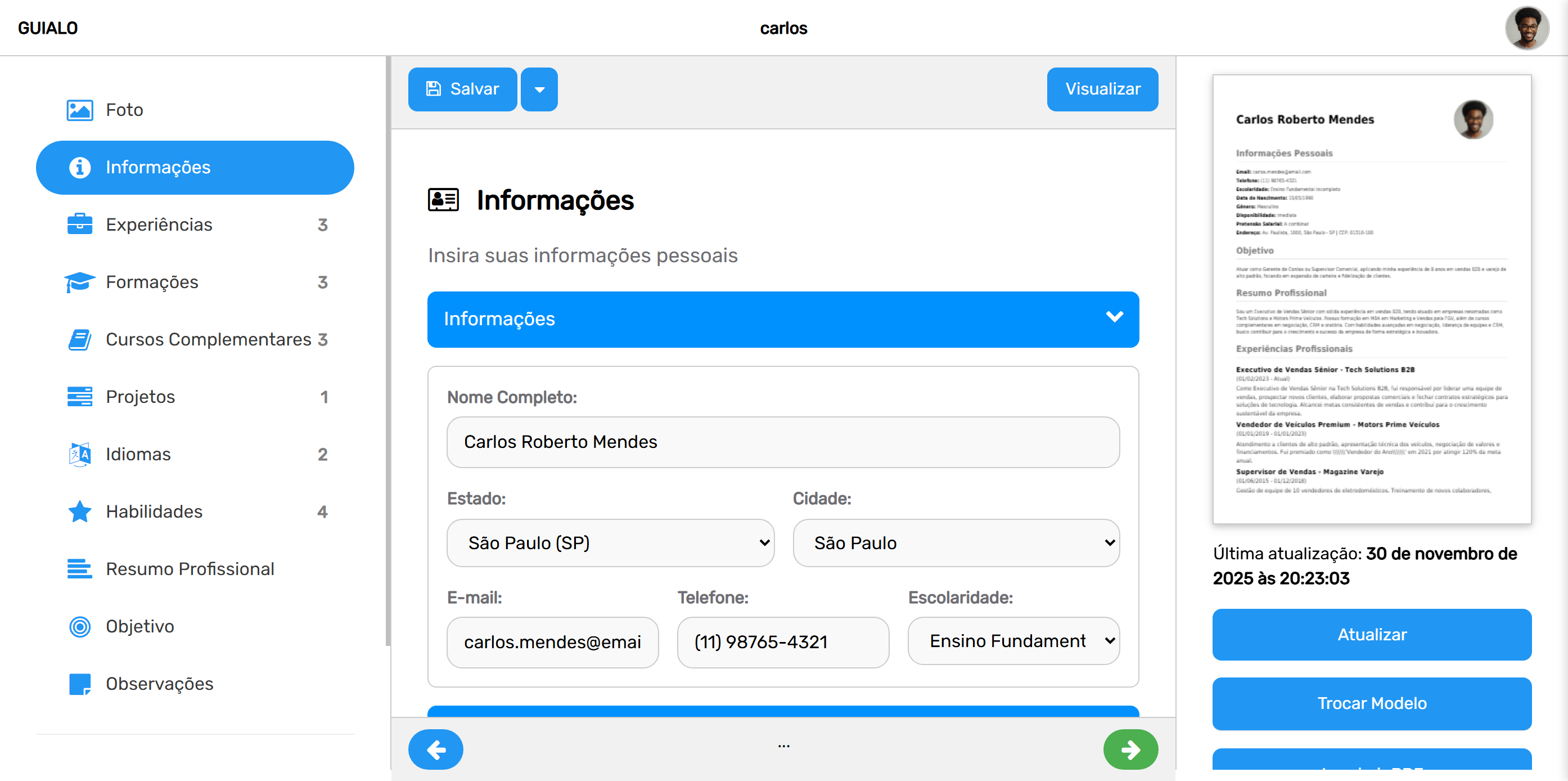 Seu currículo pronto em minutos.